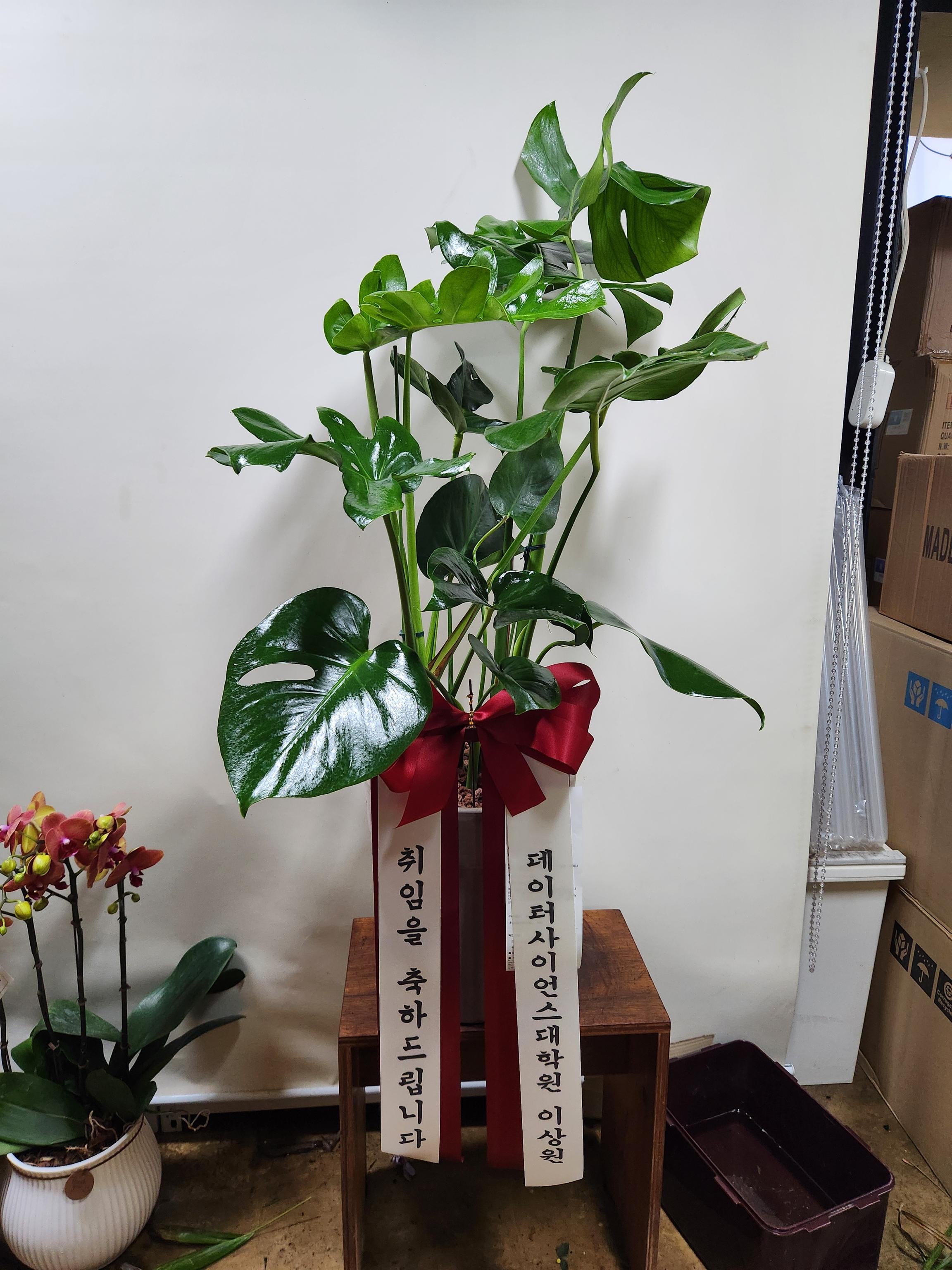 집들이 선물로 보냈는데 친구가 아주 만족해요~ 식물도 싱싱해서 이제 막 싹이 나는 아기 몬스테라도 있고ㅎㅎ 화분도 다양하게 고를 수 있어서 좋았어요! 배송날짜도 지정할 수 있고 빠르고 신속하게 받았어요~ 문구깃발색상도 예쁘네요~예쁘게 잘 키울게요^^