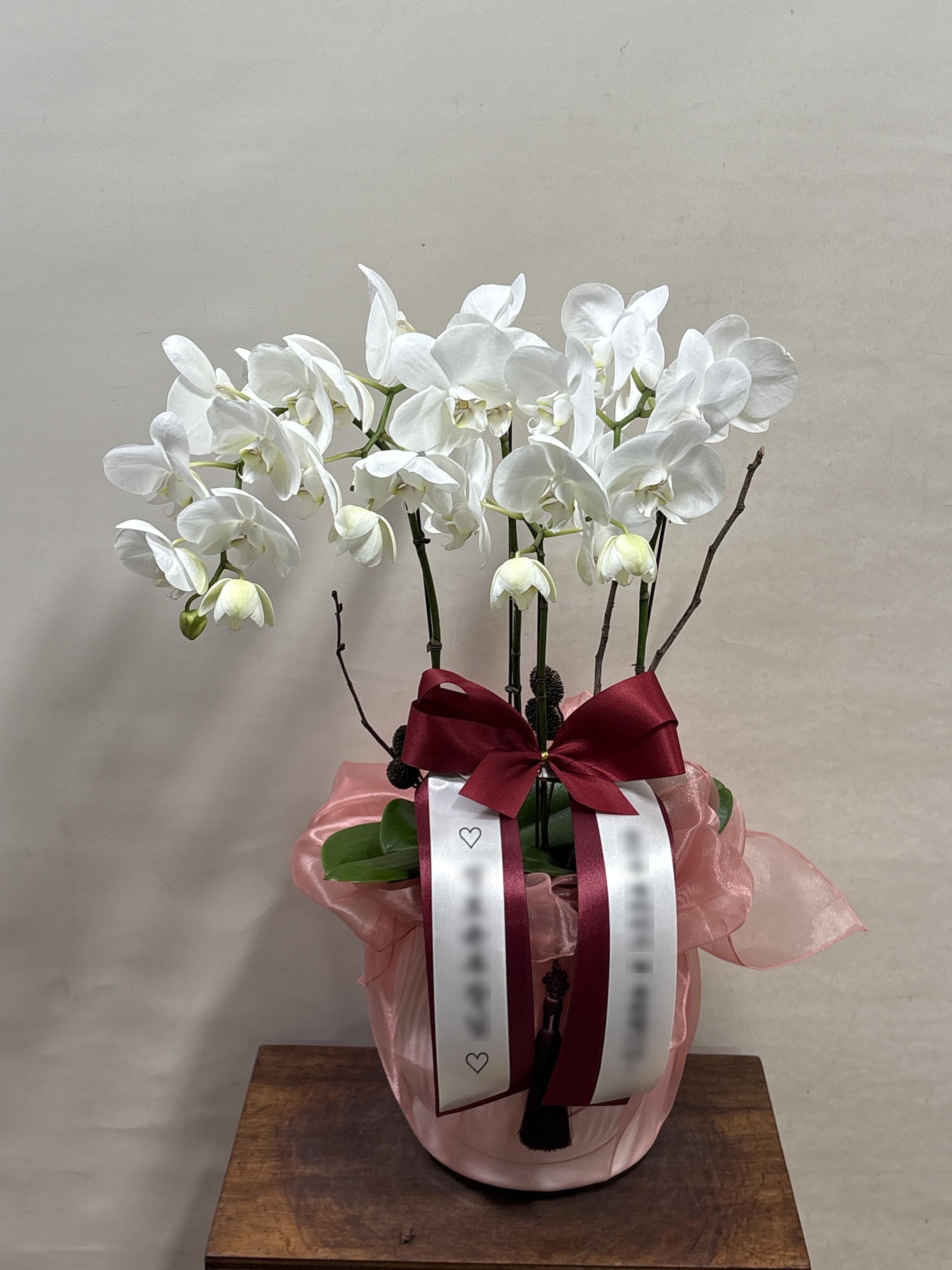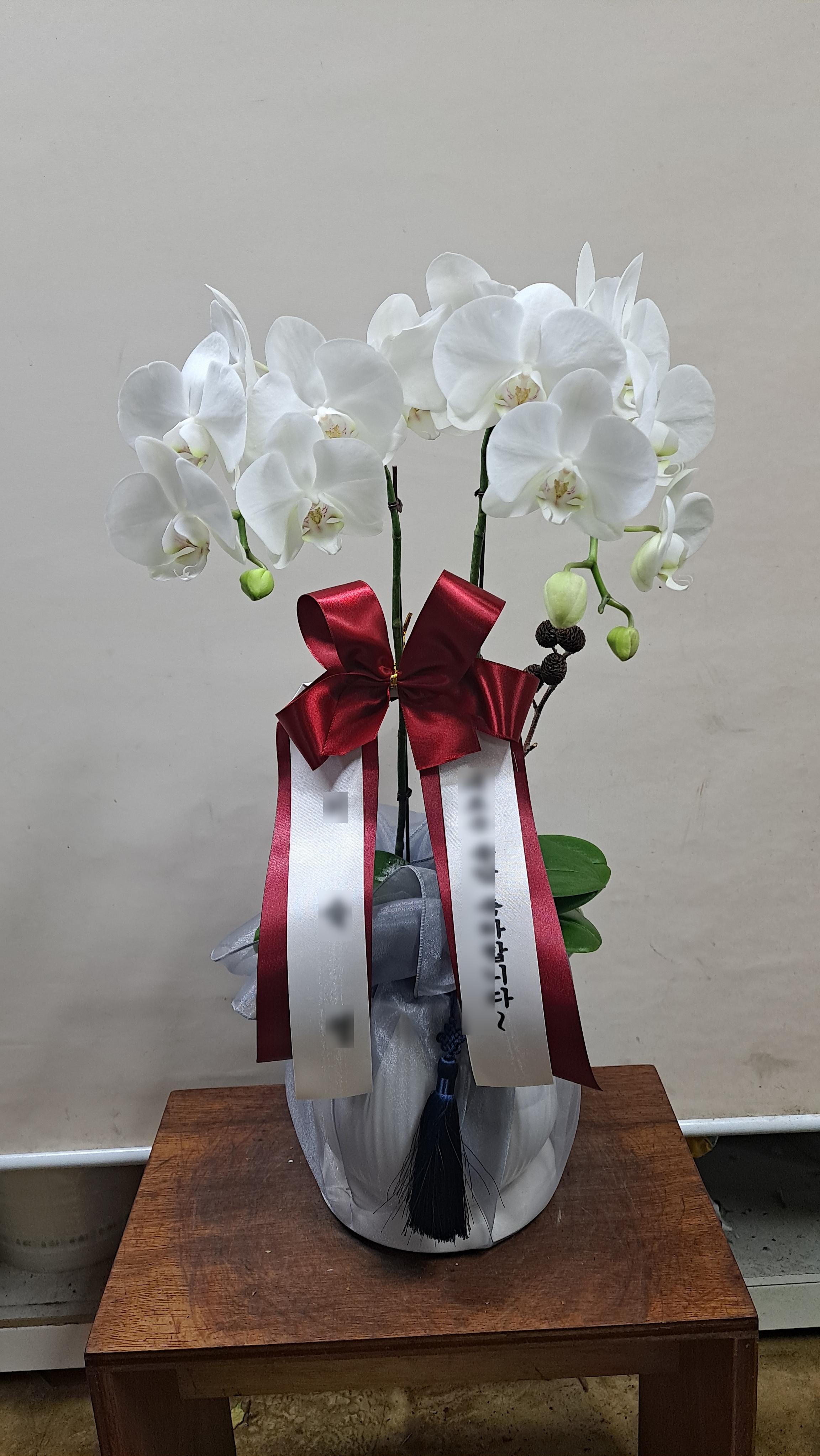 화이트 호접란 서양난 승진 영전 축하난 부모님 선물 꽃배달 개업화분 오픈 사무실이전 카페호접 화이트(4대)-줄무늬 화이트+다홍 보자기