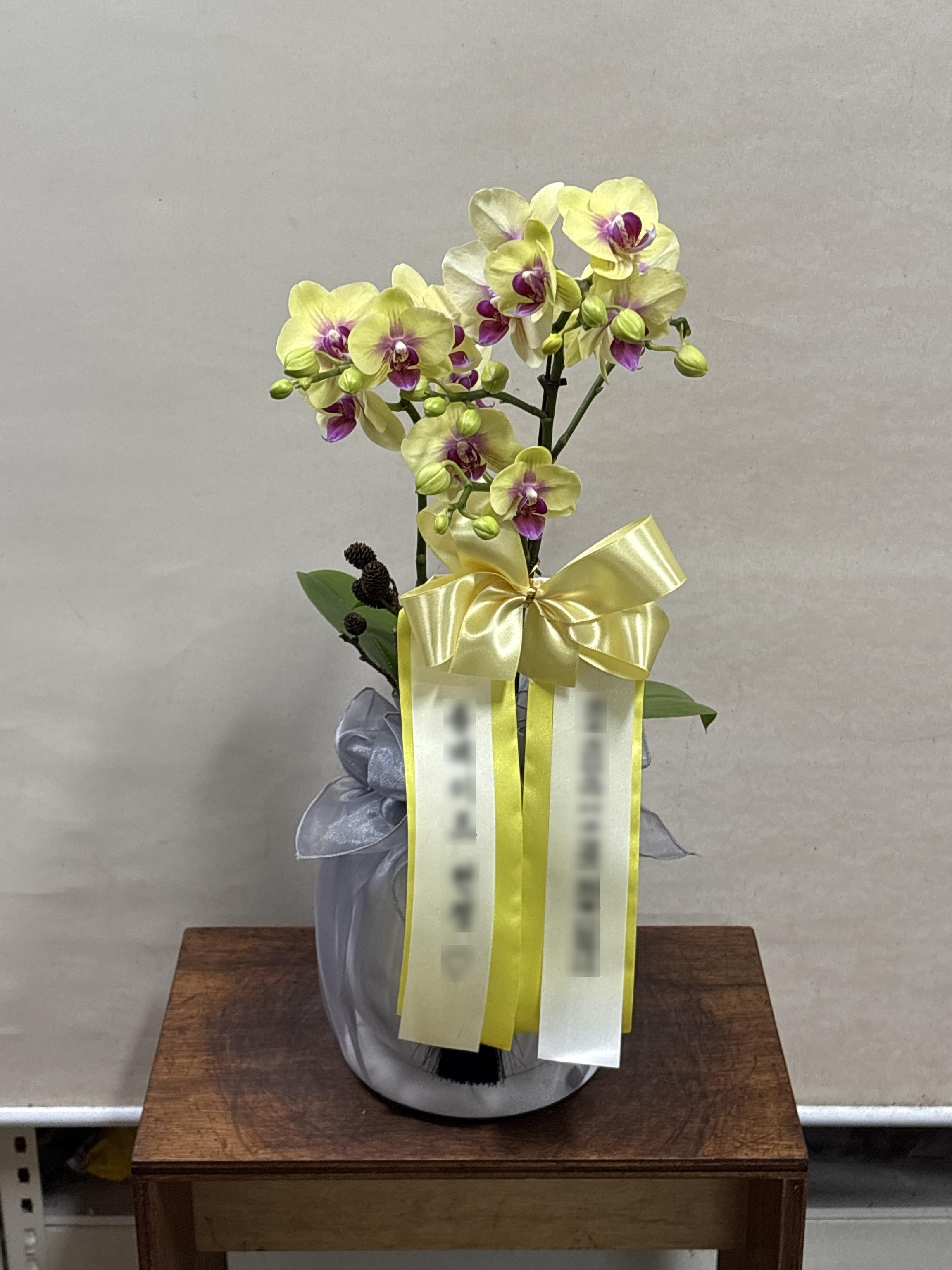 옐로 호접란 서양난 승진 영전 축하난 부모님 선물 꽃배달 개업화분 오픈 사무실이전 카페호접 노랑색(2대)-줄무늬 화이트+그레이 보자기