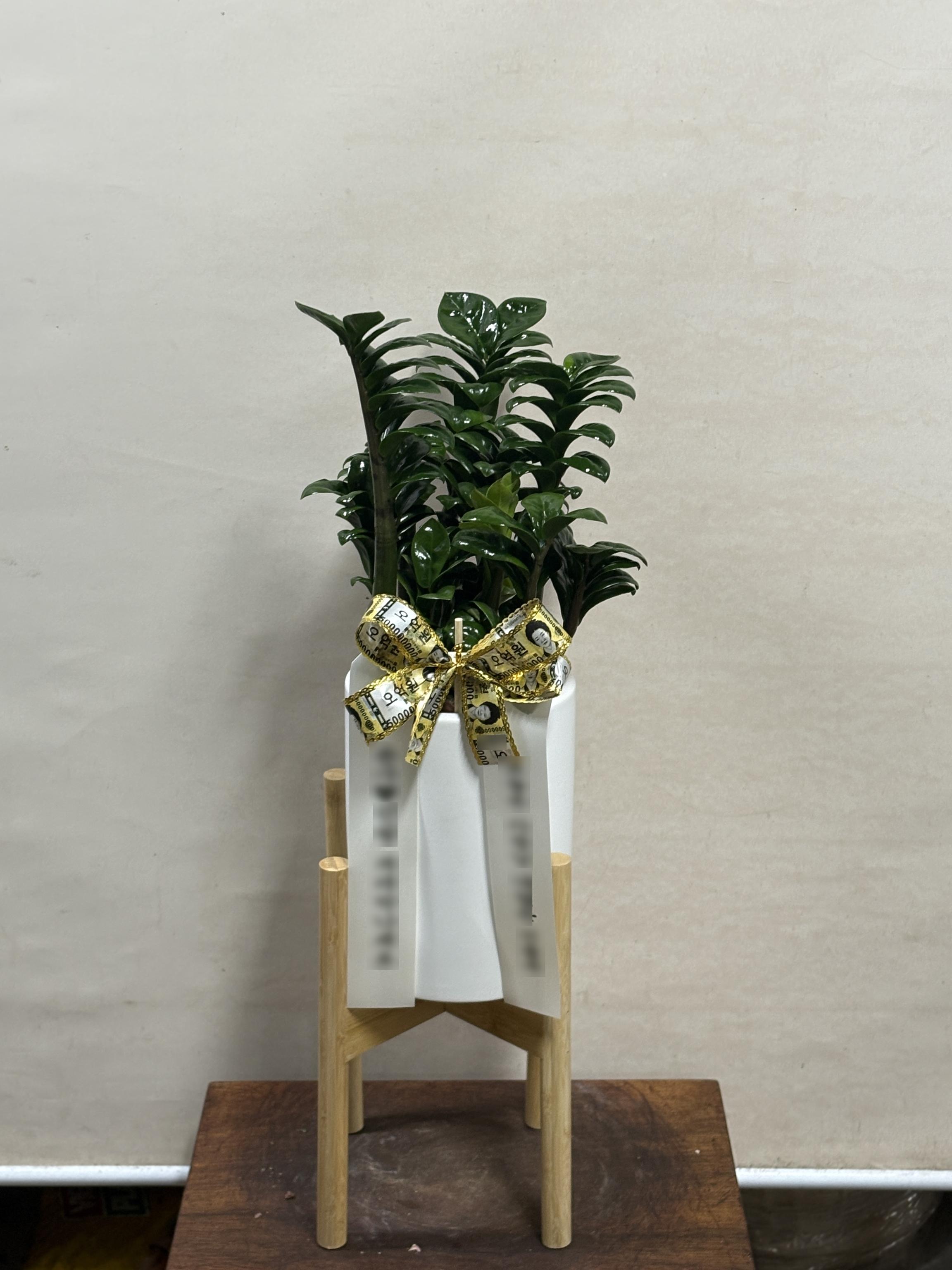 개업화분 중형 테이블 금전수 개업축하 오픈 사무실이전 카페 식당 꽃배달(추천)금전수-원통 화이트+나무받침